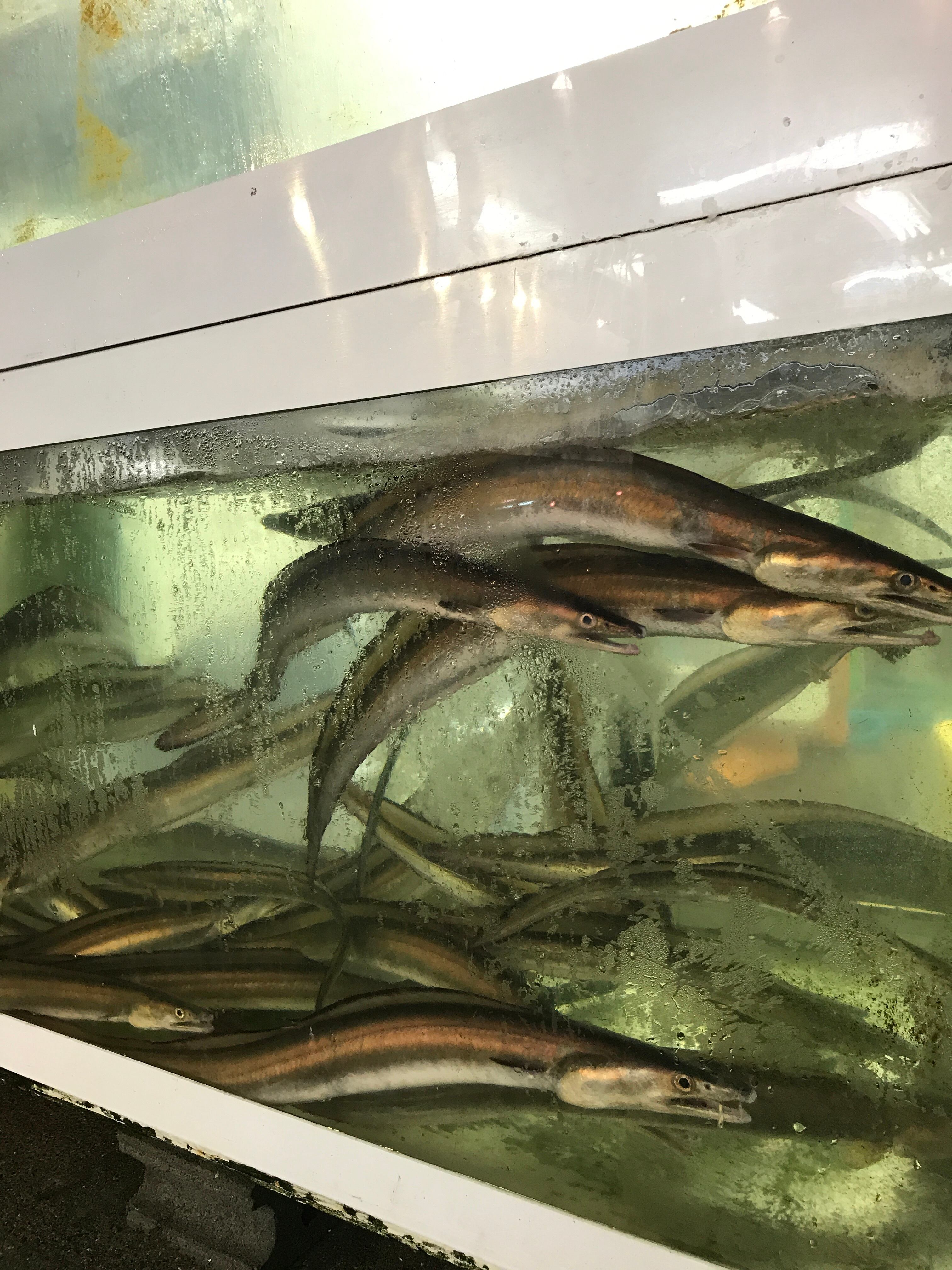 各地の鱧の水揚げ場から活魚水槽車で毎日大阪東部中央卸売市場に入荷する鱧を落札!